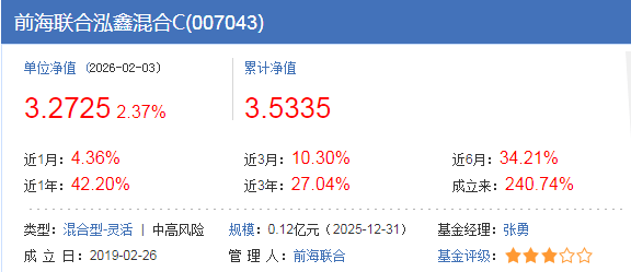 在这复杂多变的市场环境里,投资者就像在迷雾中摸索前行,想精准把握行业切换的节奏,简直比登天还难。而且,在追求收益和控制风险之间,就像走钢丝一样,稍有不慎就会摔得鼻青脸肿。那有没有一种更省心的方式,既能让我们搭上结构性机会的快车,又能有效分散风险,稳稳地赚钱呢?还真有,那就是前海联合泓鑫混合C(007043),它就像一位经验丰富的船长,能带着我们在波涛汹涌的市场海洋中安全航行。它成立以来净值增长了240.74%。