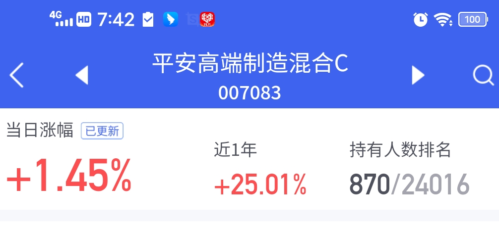 来了,来了,更新了,今天行情还是比较震荡,分化权益市场整体表现一般,$平安高端制造混合C$ 逆市收涨1.45%,这段时间高端制造还是表现给力!