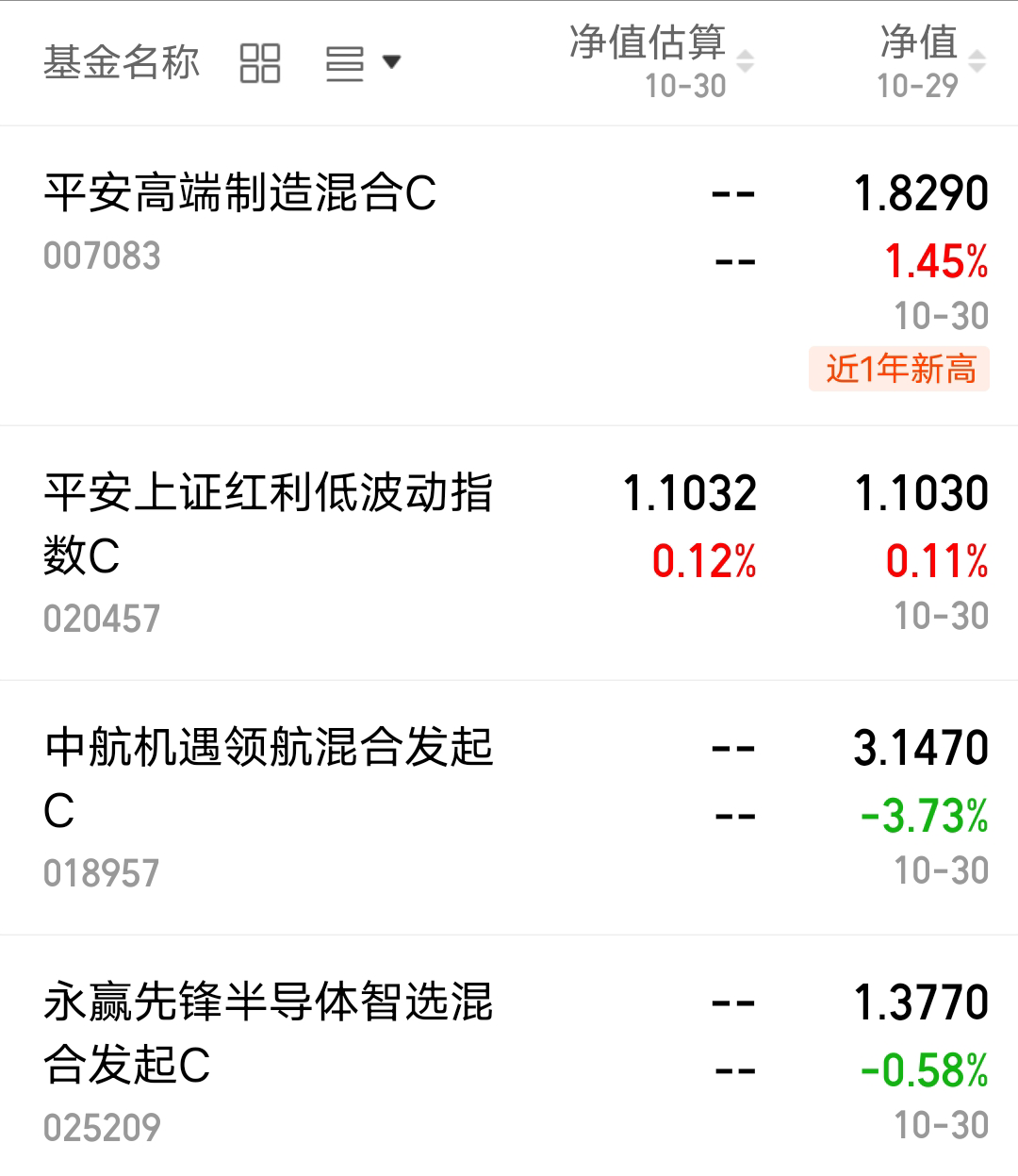 $平安高端制造混合C$ 今晚涨1.45%挺不错的