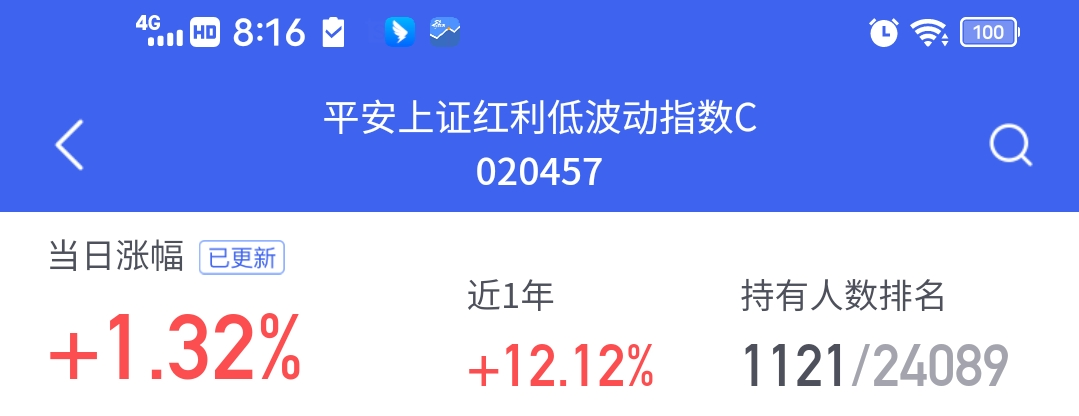 更新了,今天权益市场整体表现还行,三大指数低开高走,板块分化,今天红利板块更加坚韧强势!平安上证红利低波动指数C, +1.32%,不错,厉害了
