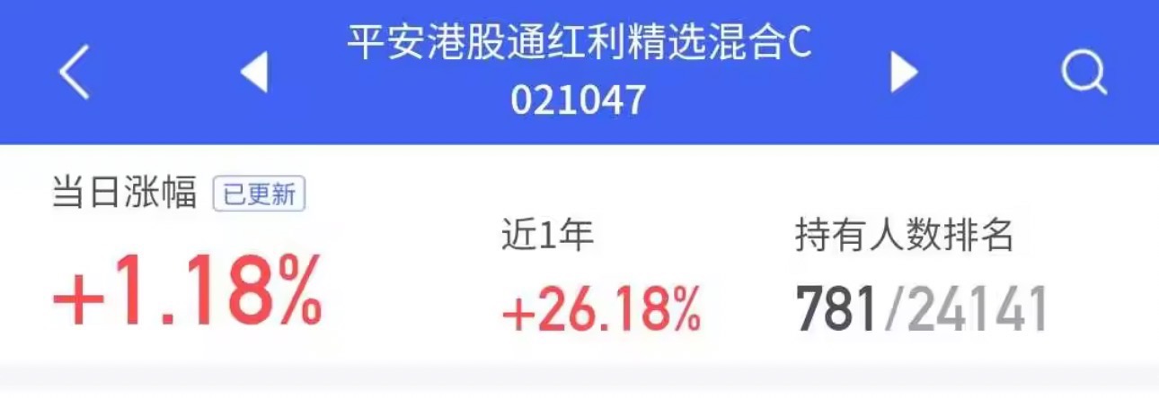 $平安港股通红利精选混合C$ 上涨1.18%