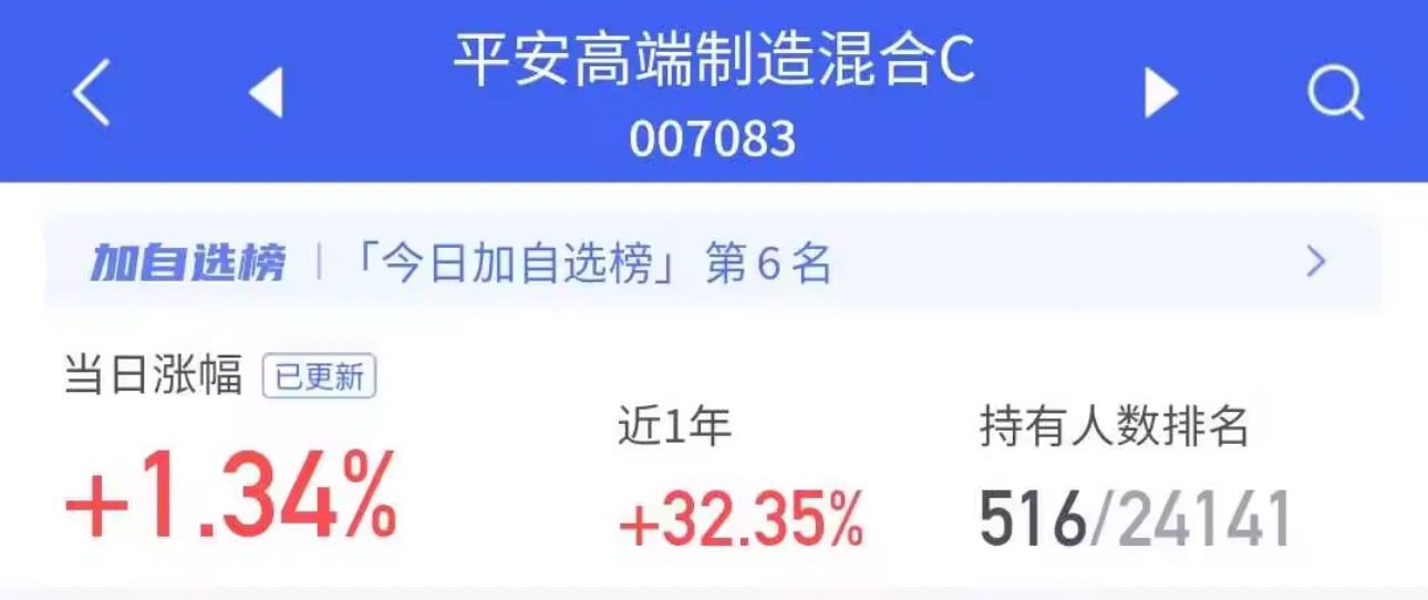 $平安高端制造混合C$ 上涨1.34%