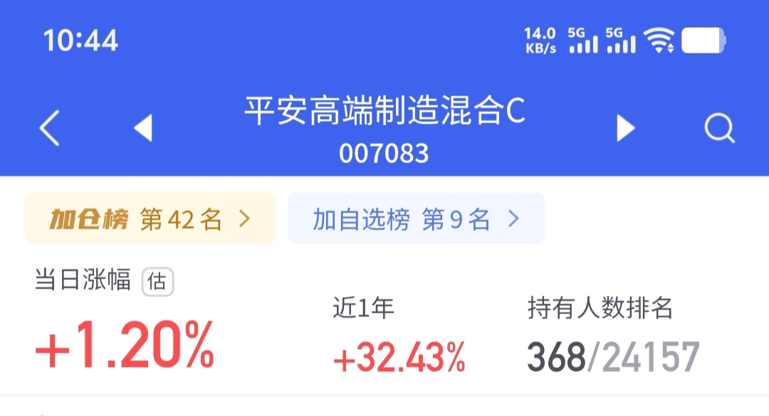 最近先进制造行情低迷,总体下降了0.54%,但是我发现了一只很不错的$平安高端制造混合C$,他们家在整体下跌的情况下突出突出重围,今天还在涨,今天估值上涨1.20%,太牛了!国家一直提倡,绿水青山就是金山银山,肯定在环保相关的行业大力推举,我发现了一只很不错的$平安中证光伏产业指数C$ 他们家一只专注雨光伏领域,值得信赖,今日估值上涨0.38%,很强!