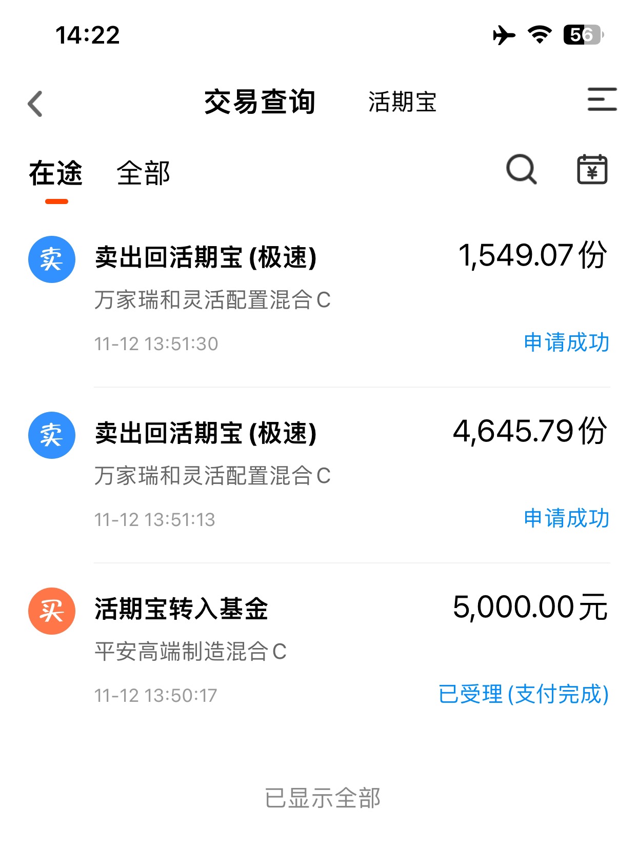 今日全部止盈万家瑞和灵活配置基金,这只基金本身不错的,业绩挺稳,只是我没钱加别的基金仓了,所以只能卖出它。