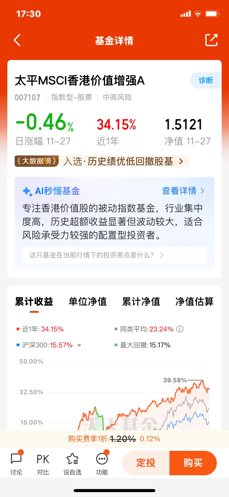 对于像我这样的投资者来说,投资这件事最怕的就是大起大落。我们追求的不是一夜暴富,而是细水长流的财富积累。太$太平MSCI香港价值增强C(OTCFUND|007108)$的低估值策略、稳健运作和良好历史表现,正好契合了这种需求。