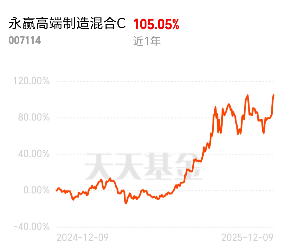 $永赢高端制造混合C$昨天暴涨8个点,今天继续大涨,这波行情的延续性真不错呀
