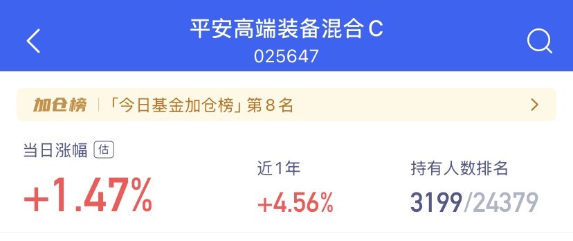 今天股市震荡下跌,个股板块分化明显,最近高端制造赛道真的是火了,最近关住到$平安高端装备混合发起式C$ 目前估值上涨了1.47%,近 1年涨幅4.56%,业绩表现很优秀啊,该基金主要聚焦高端制造核心赛道,重仓的都是新能源装备、工业自动化这些龙头企业,弹性足好操作,继续期待它后续的表现!