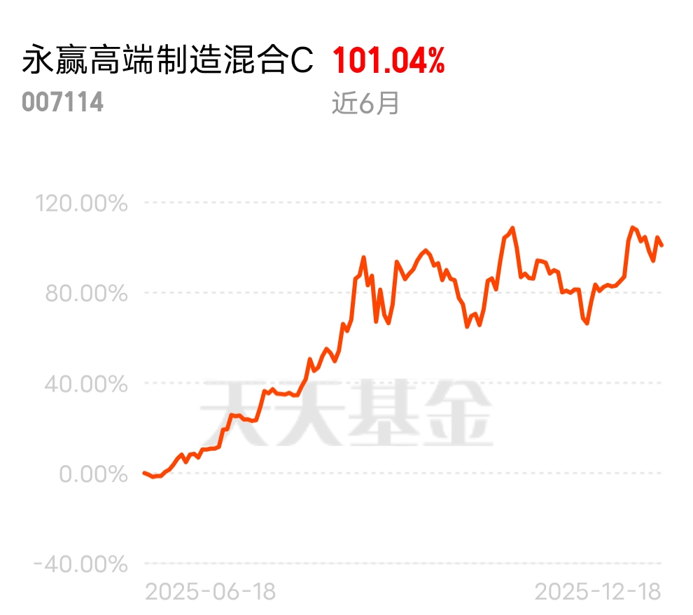 $永赢高端制造混合C$ 这基近一年涨101.4%,业绩表现真不错,准备跟一波