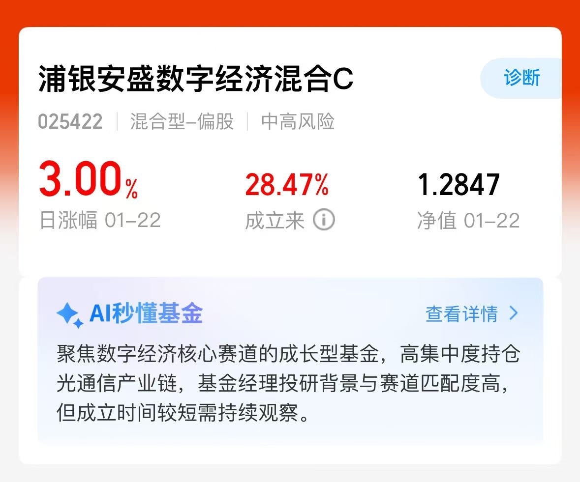 纯血CPO持仓+小体量,浦银安盛数字经济昨日涨3%,吃肉机会别错过$浦银安盛数字经济混合C$