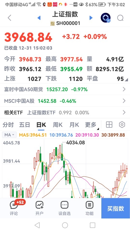 截至2025年最后一个交易日(12月31日)收盘,上证指数收涨,为全年交易画上句号。在12月29日,我已对部分基金持仓进行了阶段性赎回操作。目前投资组合中现金占比约为53%,权益类资产占比约47%,资产结构已调整为以防御为主、兼具弹性的配置状态,为下一年度的市场布局做好准备。