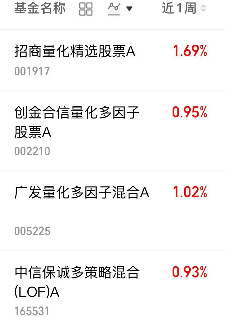 近一周量化基金表现如下: