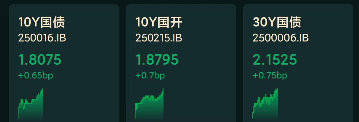 十年期国债收益率:1.8075%,+0.65BP(国债收益率越跌,债市越涨)