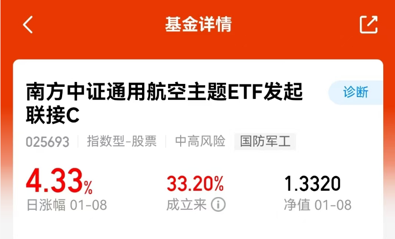 我决定了,买了点$南方中证通用航空主题ETF发起联接C$(025693)。近一个月31.32%的涨幅,同类排名第一,这个收益表现确实突出。同时,它的综合费率处于同类最低档,降低了投资负担。我个人认为,低空经济行业正在经历从量变到质变的过程,应用深度和广度都在拓展。基于当前态势,今天预估保持上涨,若要分享这个发展期,这个产品是一个考虑起来比较省心的选项,后续值得期待。#暖阳创作计划#