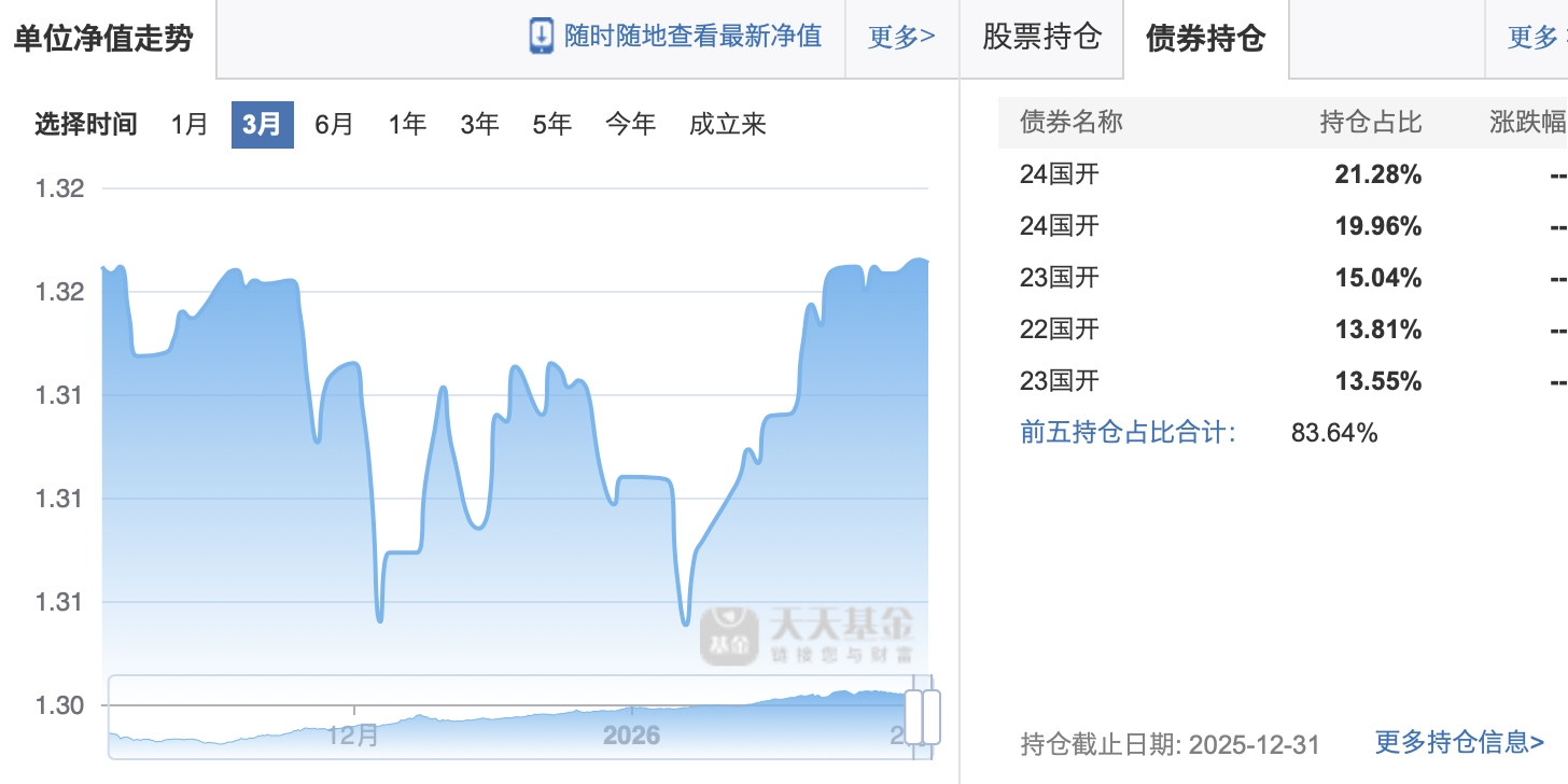 最近大a猛杀可太吓人了,科创债成了重灾区,毕竟涨幅太大了。但是,我发现一个小秘密,保险资金在悄悄增配地方债。比如这只基国开债占比超 70%,流动性好,最近半个月净值波动只有 0.49%,比沪深 300 的 2.1% 低多了,原想着追一把科技基,想了想我还是蹲在这里吧。
