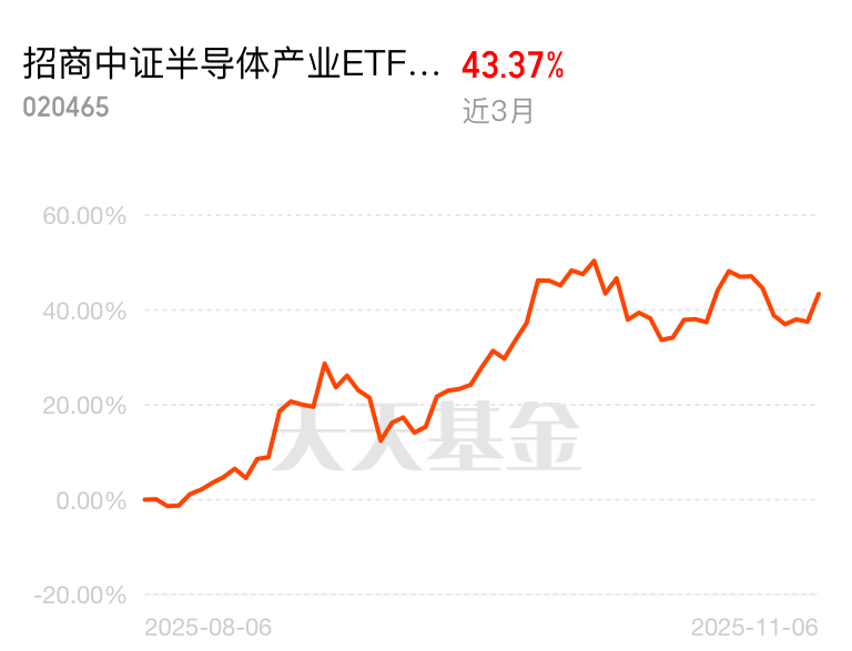 全球存储芯片厂商纷纷上调第四季度报价,行业涨价氛围浓厚。招商中证半导体产业ETF联接C近3个月涨了43.37%,昨日涨幅4%多,资金聚焦存储领域,后续肯定还能涨。 $招商中证半导体产业ETF发起式联接C$