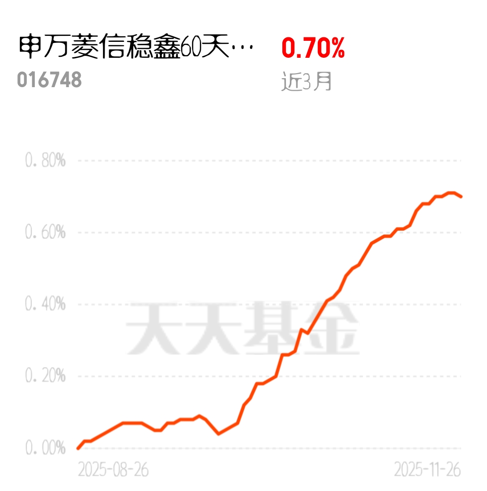 现在理财想赚点收益真不容易,高风险怕亏低风险收益少,申万菱信稳鑫60天滚动持有中短债债券A近3个月收益0.70%,平衡风险与收益,闲钱打理正合适。
