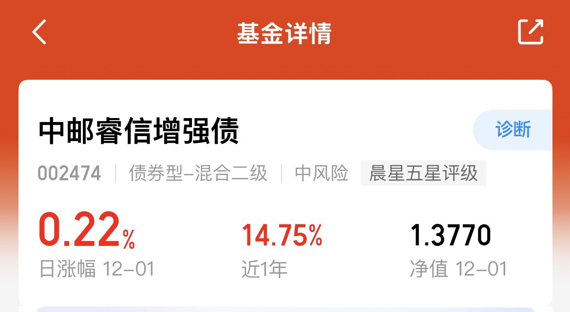 良好的开局,继续努力,$中邮睿信增强债$今日收蛋22个,$鹏华丰禄债券$今日收蛋