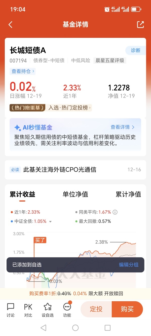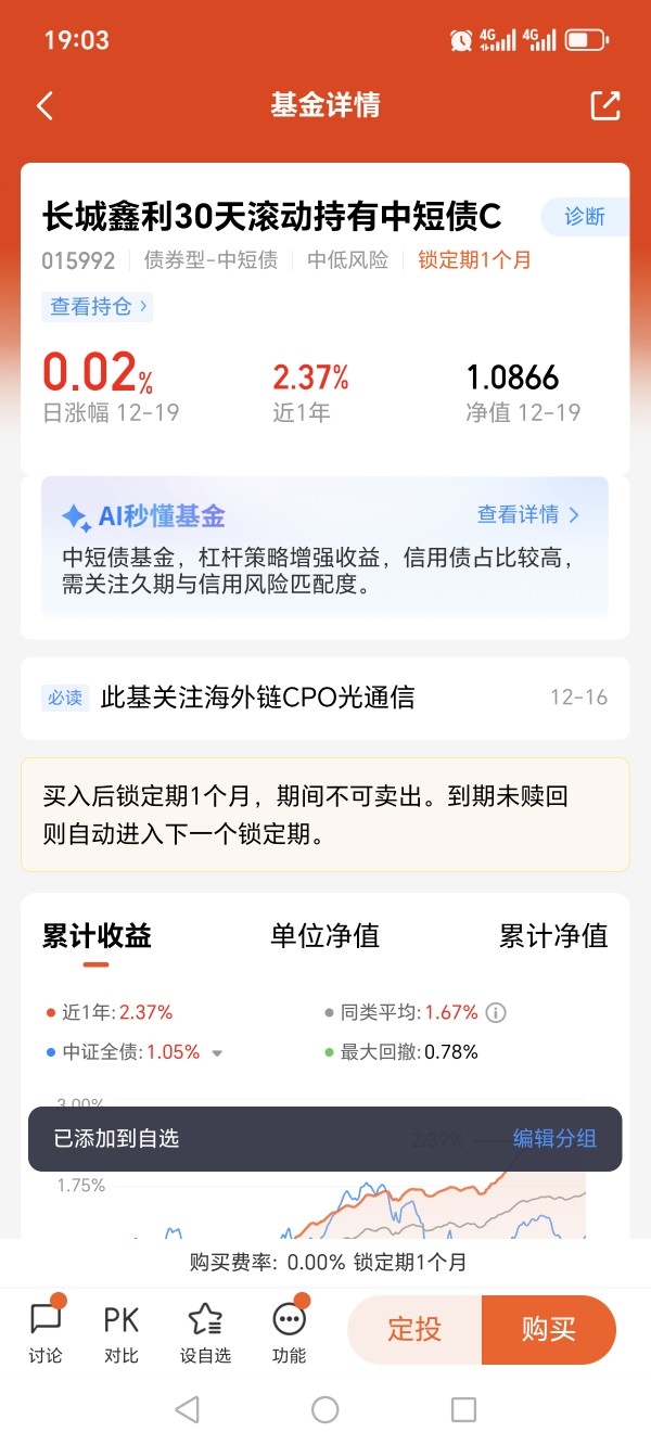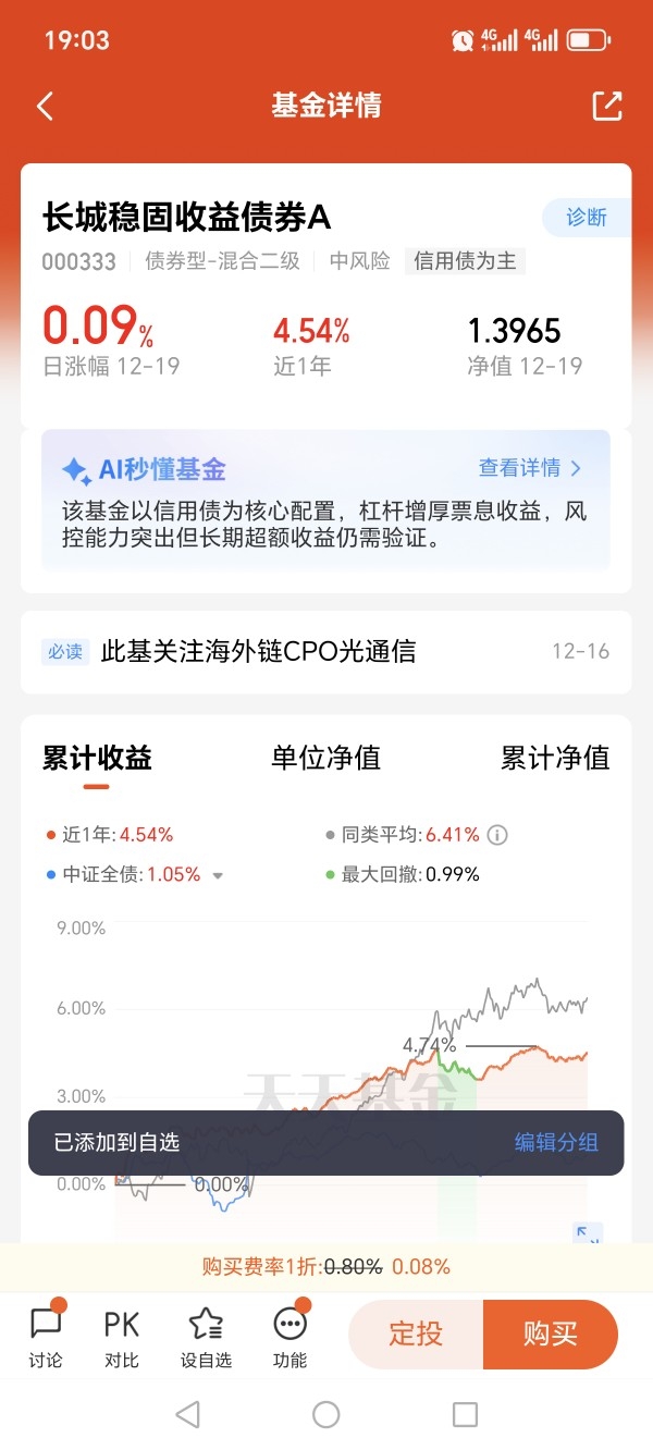 3)这款基金今年以来的涨幅为2.22%,而今天只要参与投资债券类资产的小伙伴都知道,想要获得正收益是比较困难的,所以它在今年能取得如此成绩,是弥足珍贵的。@长城基金