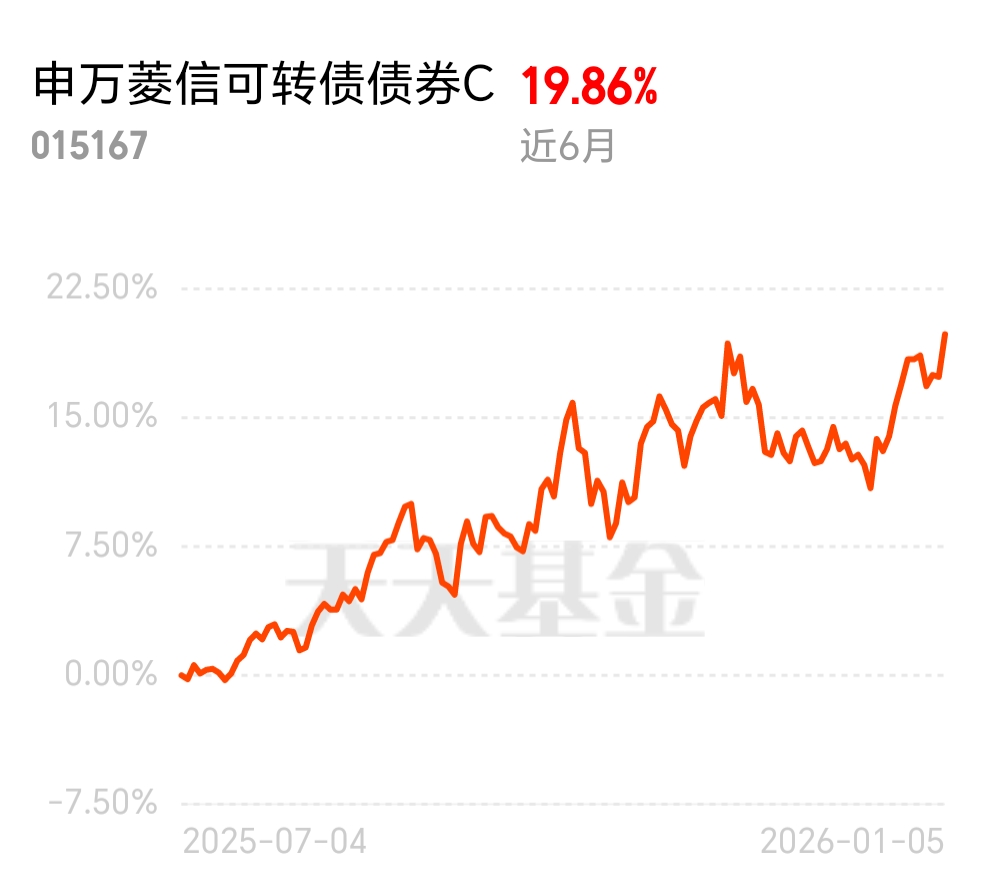 2025 年转债市场局部火热,中证转债指数不断刷新高点,涨幅超 17%。申万菱信可转债 C 近 6 月 1986 个蛋,近一年涨 28.9%,有债券利息和买卖价差收入,股票持仓覆盖电池等赛道,近期表现稳居同类前列,现在入手划算。$申万菱信可转债债券C$
