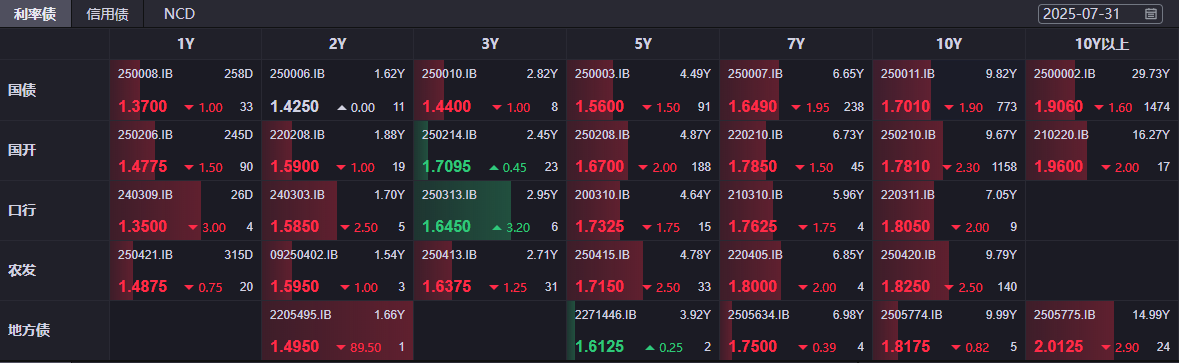 利率债再度拉升,中长端债券的收益率下行幅度再度扩大,多数5~30年期债券的收益率下行幅度都在2.00bp以上。