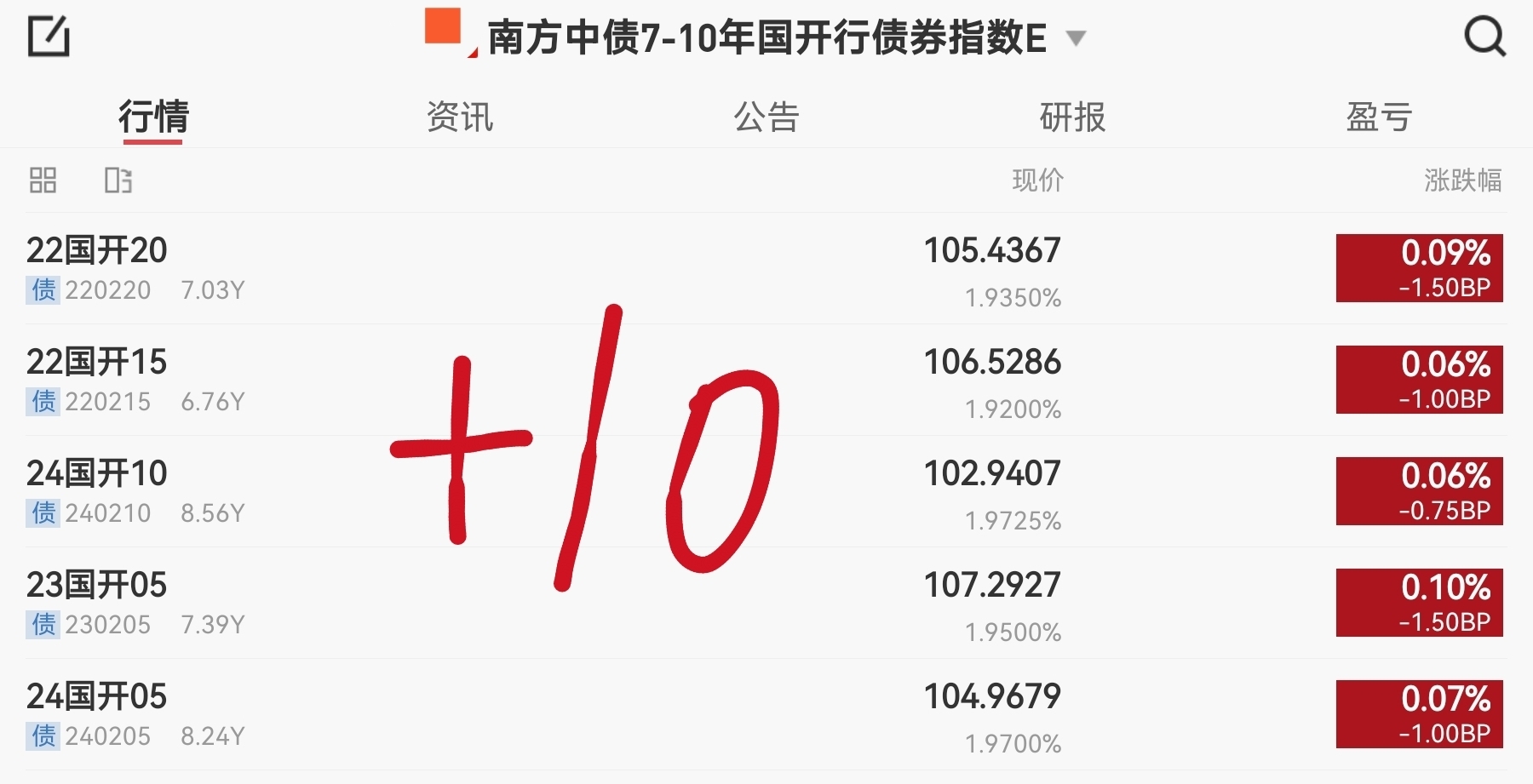 目前利率债长端债券大部分都已经红了,而短端债券没什么动静,还都处于下跌状态。