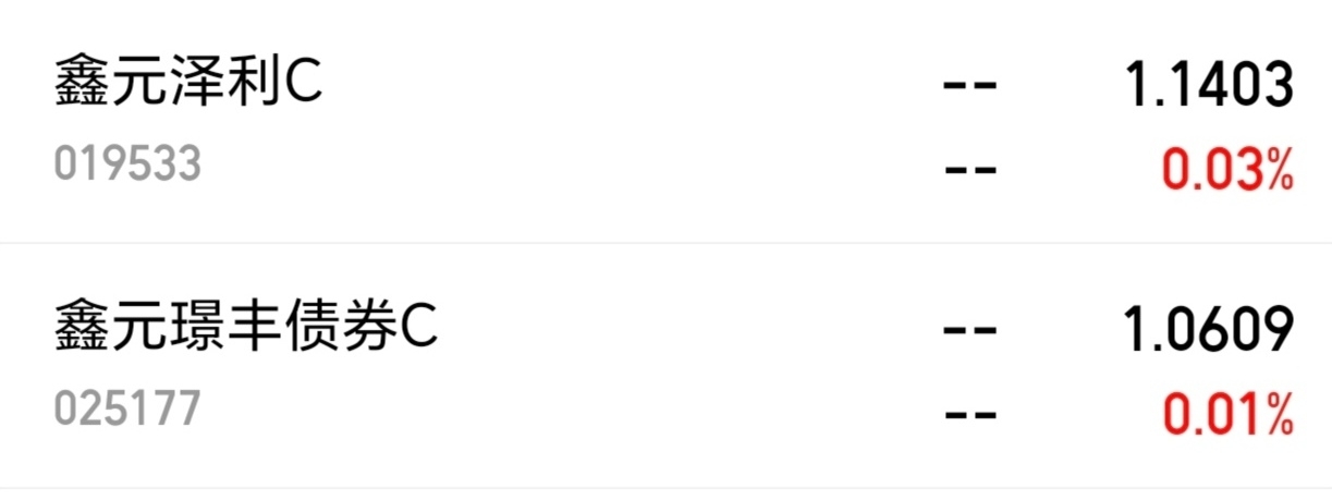 $鑫元泽利债券C$今天收蛋三个