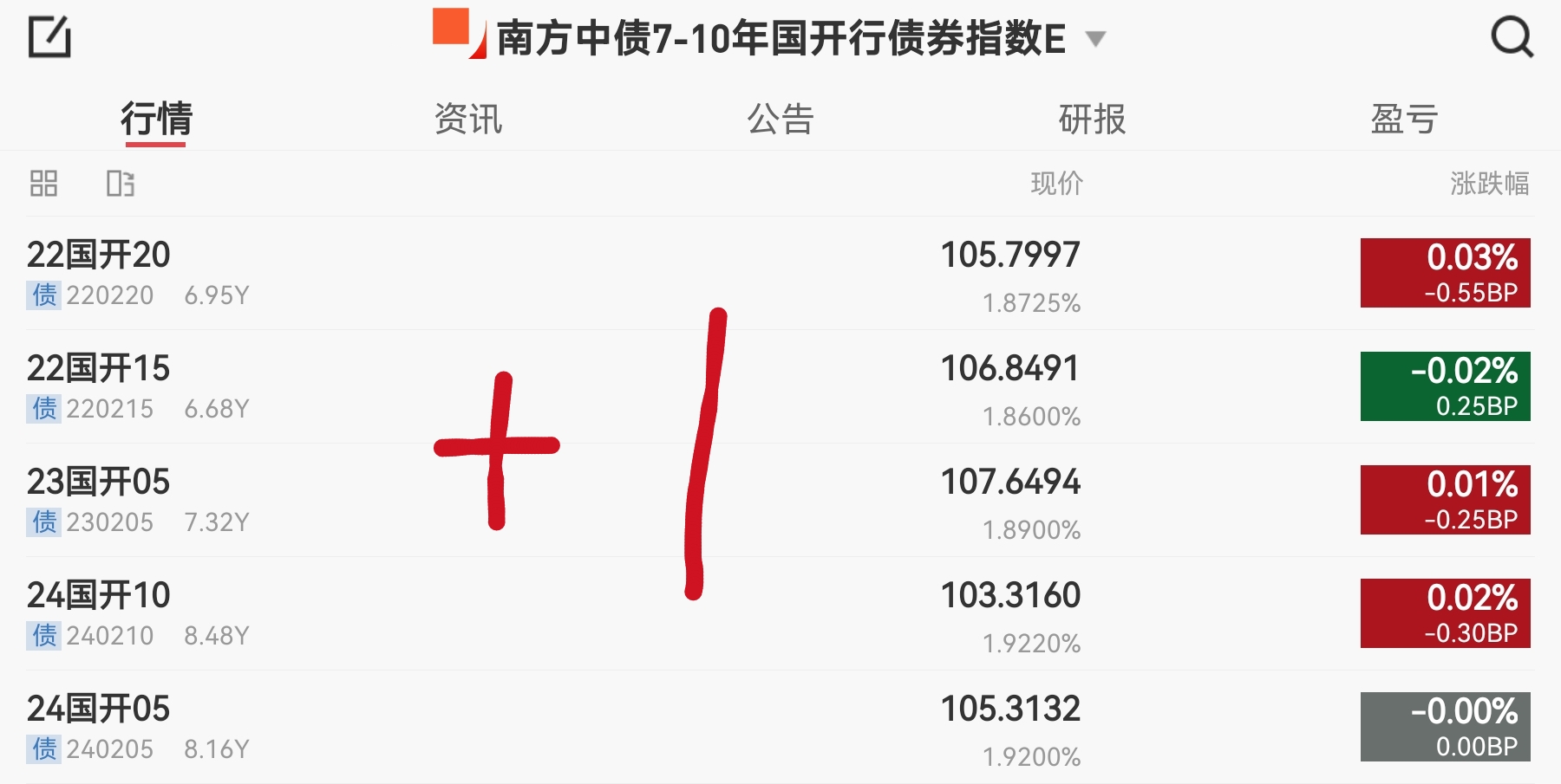 今天7-10年期债券真的有点涨不动,不仅活跃券涨幅小,而且次活跃券还有个别处于下跌状态。所以南方中债7-10年国开行债券指数E目前只收1个蛋3。