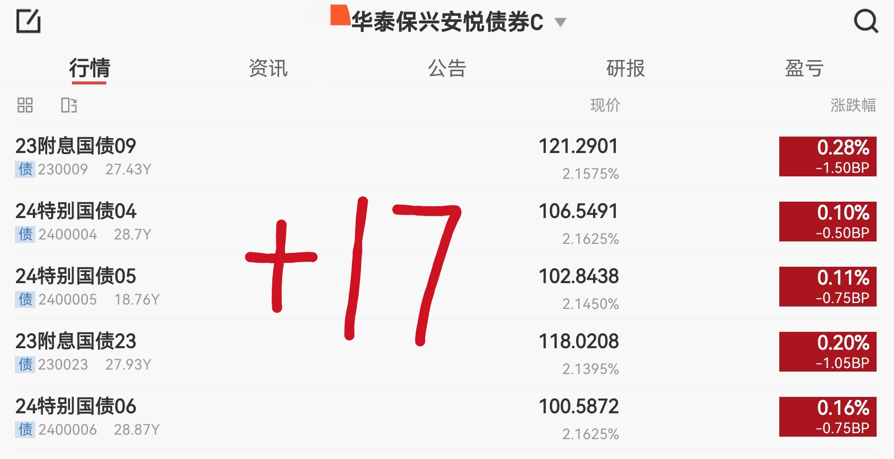 $华泰保兴安悦债券C(OTCFUND|020741)$$广发双债添利债券E(OTCFUND|009267)$$国金惠盈纯债C(OTCFUND|006760)$$富国优化增强债券E(OTCFUND|018980)$$南方中债7-10年国开行债券指数E(OTCFUND|013594)$