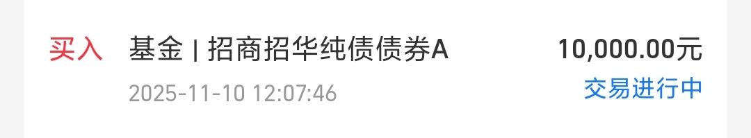 信用债(长债):最近受债市调整影响,该债券基金结束8连涨,出现了2个交易日的回调。所以今天逢低加仓$招商招华纯债A(OTCFUND|003448)$,买入10000元。