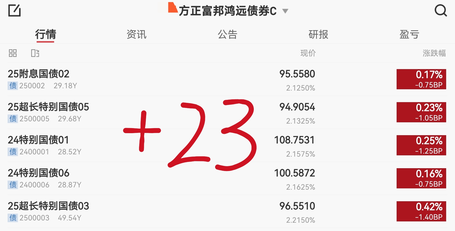 $方正富邦鸿远债券C(OTCFUND|015909)$收23个蛋5。