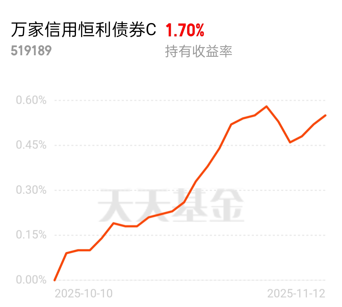 $万家信用恒利债券C$ 信用恒利债也太香了吧,最近连续收蛋根本停不下来,继续持有啦