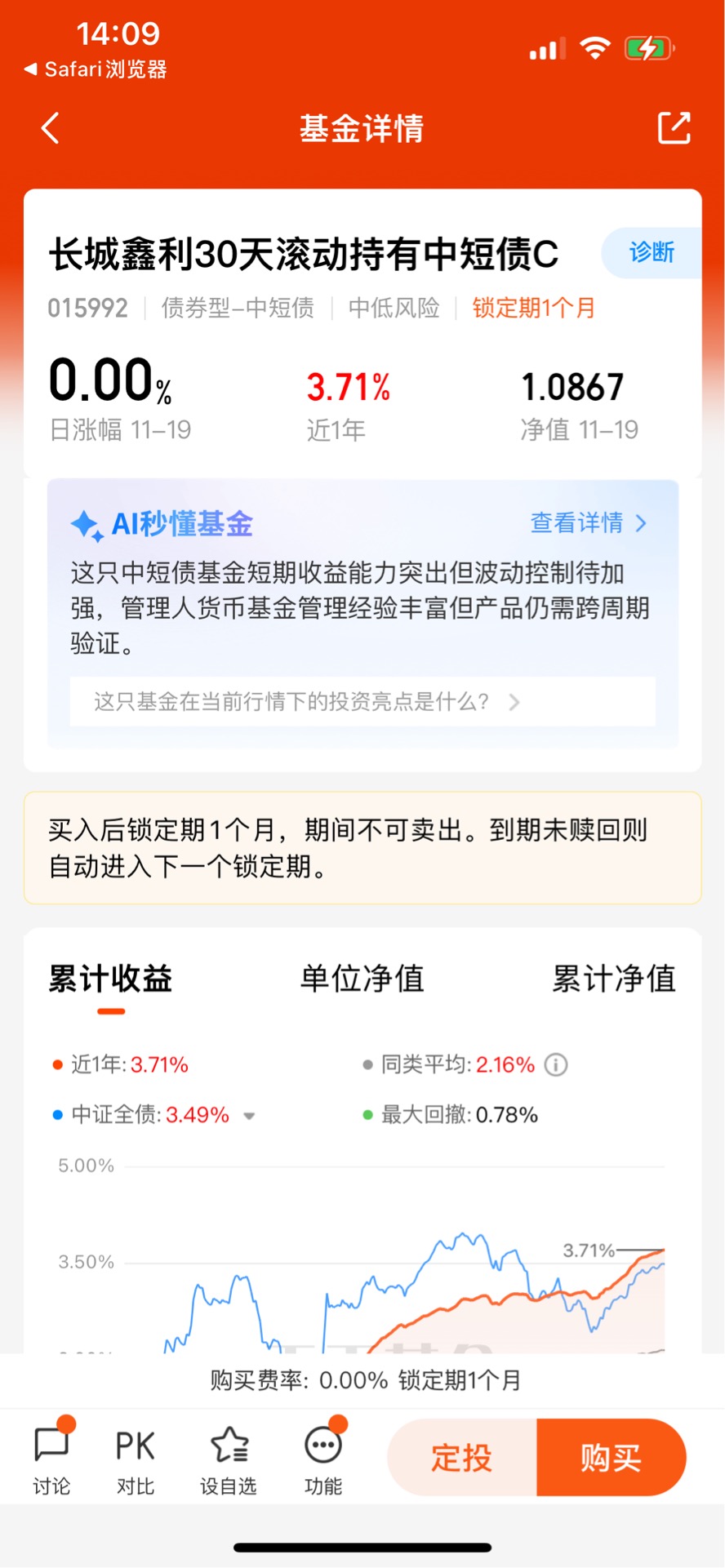 买基金不光看产品,还得看公司,长城基金是2001年成立的老牌公司,现在管理规模3560亿,有249只基金、39个基金经理,不是那种“小公司单吊一只产品”的情况。固收本来就是长城基金的“强项”,比如它家的长城短债A近一年同类排第2/132,长城鑫利30天近一年排前1%,等于“长城的固收产品线是成体系的”,不是“碰巧做火了一只”。公司后台稳,投研团队强,经理不用操心“没钱买债”“没人支持研究”,产品的业绩才能持续稳下去。