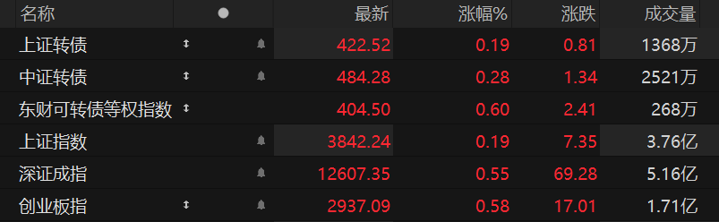 下午开盘以后,权益市场大幅拉升,目前权益市场三大指数集体翻红。可转债也反应迅速,拉伸动作比较敏捷,目前三大指数集体翻红,最值得一提的就是可转债等权指数了,目前涨幅比较大,达到了0.60%。