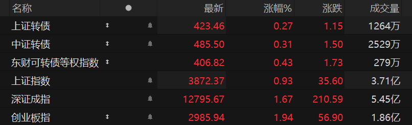 权益市场在午盘冲高回落之后,下午以高位震荡行情为主,优势依旧明显。可转债的表现就没有那么亮眼了,目前涨幅较小,就拿涨幅最大的可转债等权指数来说吧,涨幅也仅仅只有0.43%,与权益指数相差甚远。