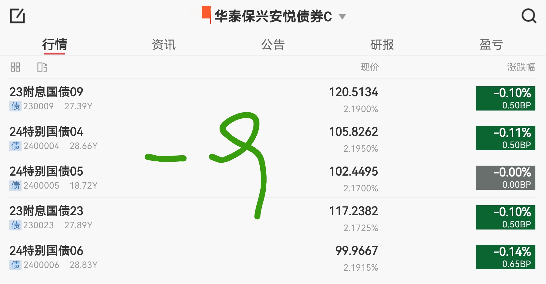 $华泰保兴安悦债券C(OTCFUND|020741)$$汇添富丰和纯债C(OTCFUND|017460)$$富国优化增强债券E(OTCFUND|018980)$$广发双债添利债券E(OTCFUND|009267)$$国金惠盈纯债C(OTCFUND|006760)$$方正富邦鸿远债券C(OTCFUND|015909)$$南方中债7-10年国开行债券指数E(OTCFUND|013594)$