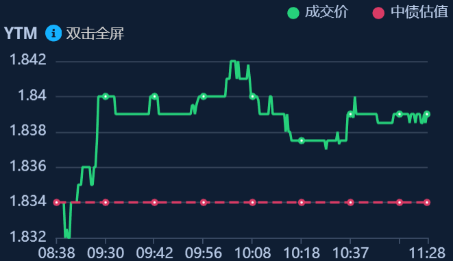 二、十年期国债收益率:1.839 0.005%(国债收益率越涨,债市越跌,两者反向关系)