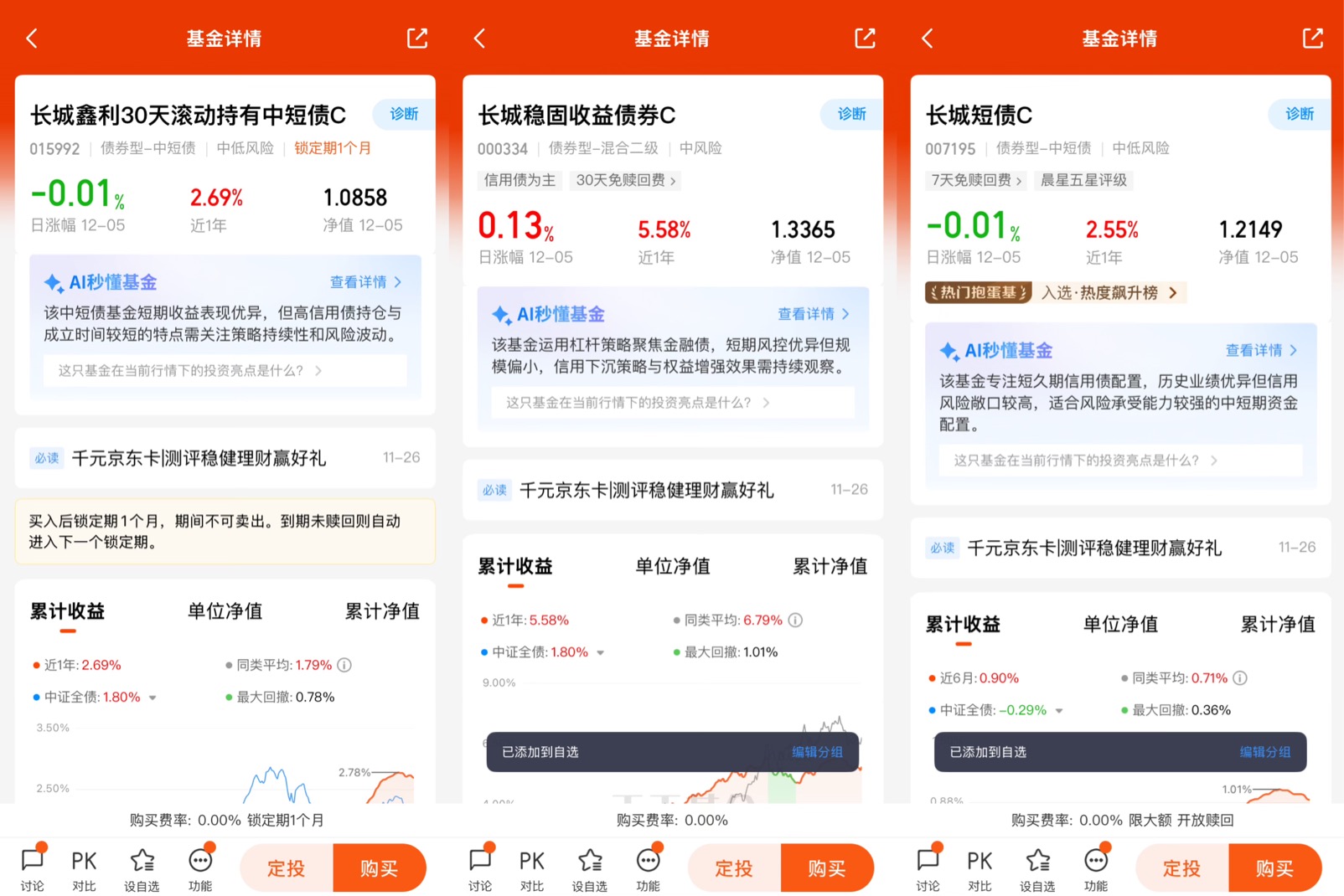 分享我对债基的投资心得:短债基金收益稳定,是闲钱理财和底仓配置优选;如果想提升收益弹性,可以关注一下主要配置信用债的$长城鑫利30天滚动持有中短债C$ ,以及固收打底、权益增厚的$长城稳固收益债券C$ ,都表现非常优秀,是低利率环境和震荡市中资产配置中优选!但都需要长期持有,不宜频繁操作。