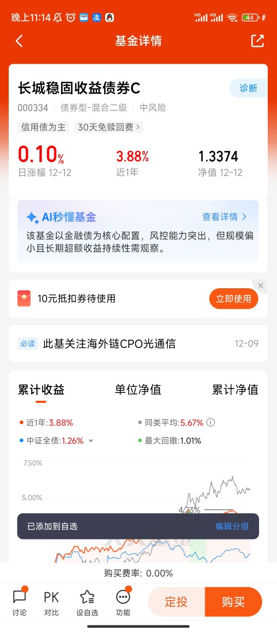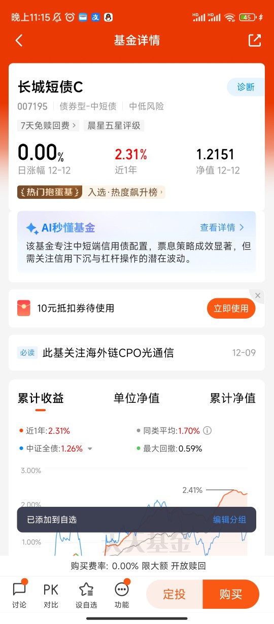 该基金C类份额不收取申购费用,销售服务费仅0.2%/年,管理费0.2%/年,托管费0.05%/年,持有满30天免赎回费。相比传统货币基金,收益更具吸引力;相比主动权益基金,费率更低廉,适合长期持有。