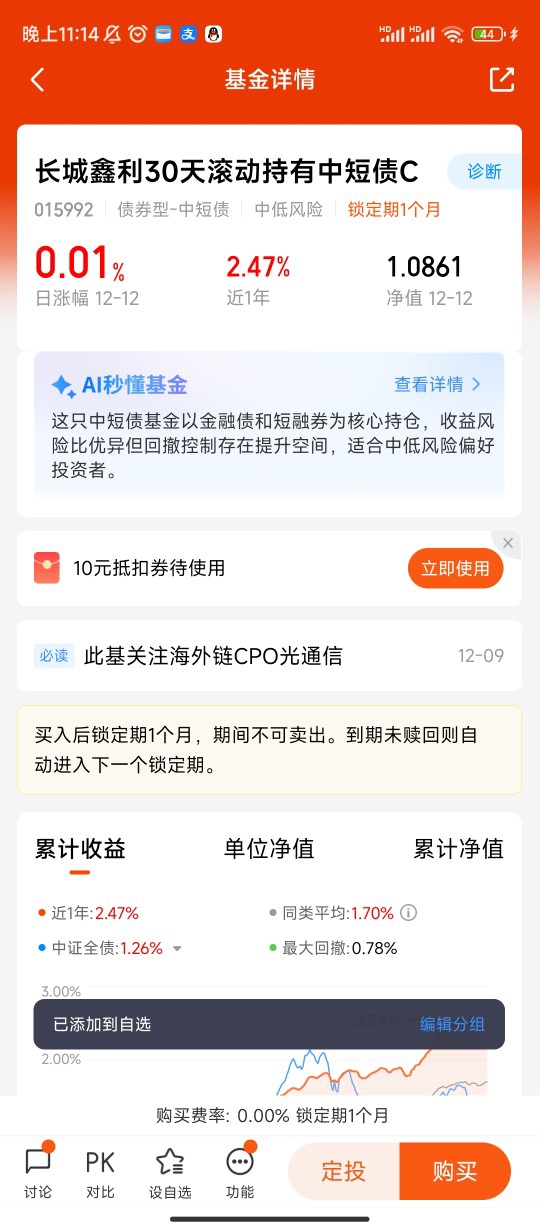 稳健投资新选择:长城鑫利30天滚动持有中短债C