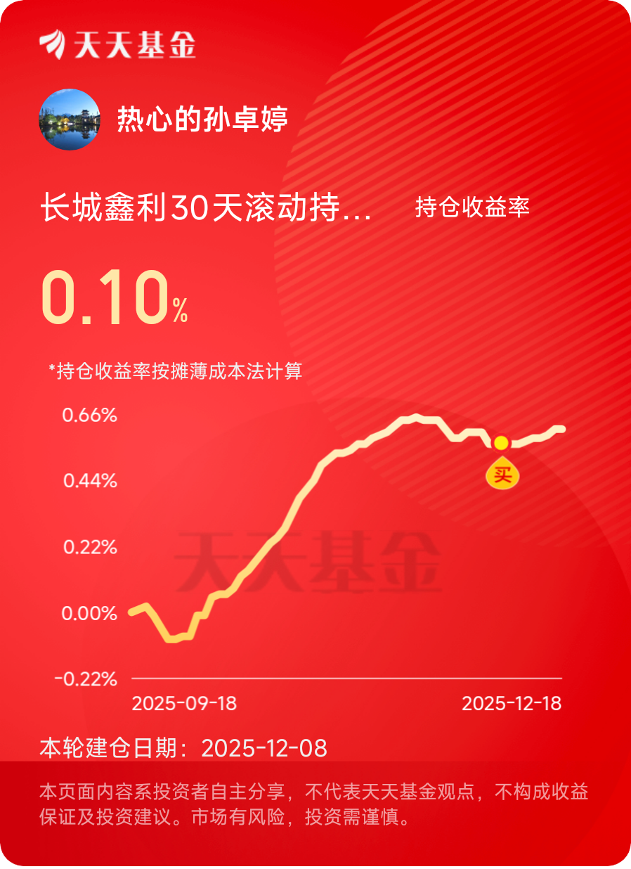 作为刚入职3个月的职场新人,第一次领到工资时又兴奋又迷茫——余额宝年化才1%多,股票基金怕亏光本金,定期理财锁太久应急拿不出… 对比了10多只基金后,我果断把3万应急金放进了「长城鑫利30天滚动持有中短债C(015992)」,持有半年下来,收益比货币基金高3倍,几乎没波动,完全戳中了新员工的理财痛点!今天就从真实持有体验出发,带大家深度测评这只“闲钱管家”,聊聊为什么我坚定看好中短债赛道~