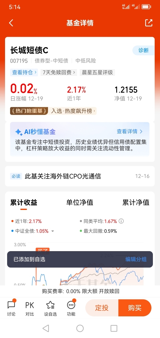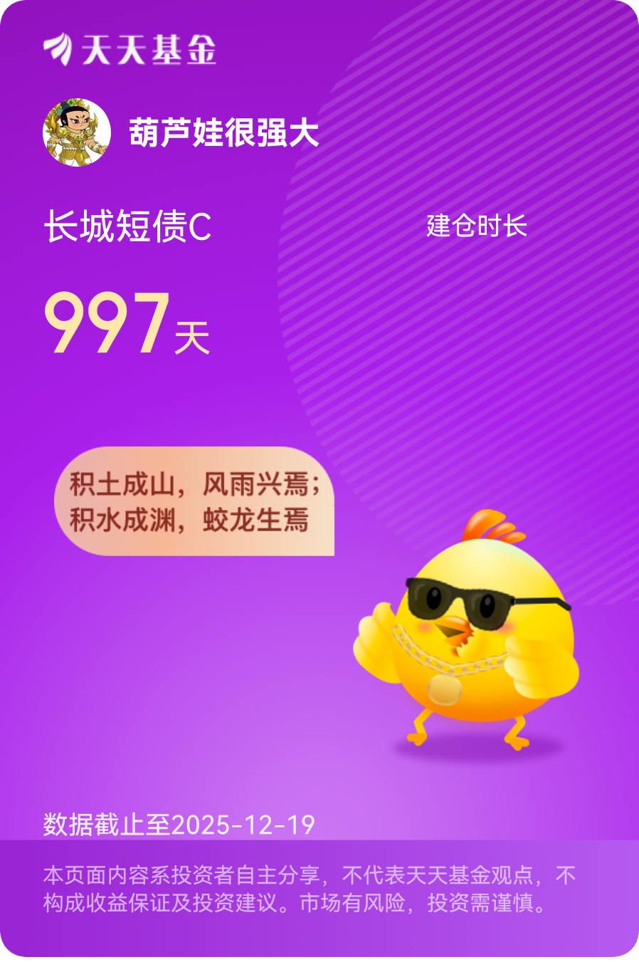 再经过以上认真的思考之后,我持有的是长城短债C(007195),我不但目前持有它,同时也做好了在未来对它继续加仓的投资计划了,因为它在我的心里,就是一款名副其实的宝藏基金。@长城基金