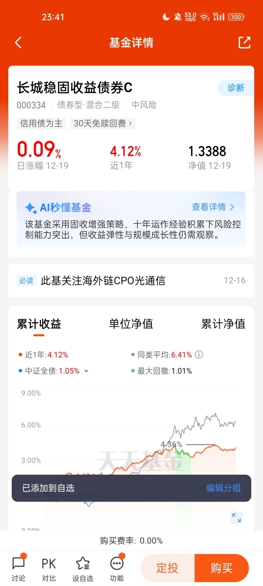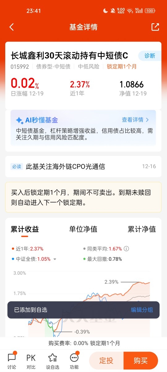我非常看好长城鑫利30天C基金和长城稳固收益C基金。长城鑫利30天C基金主要投资
