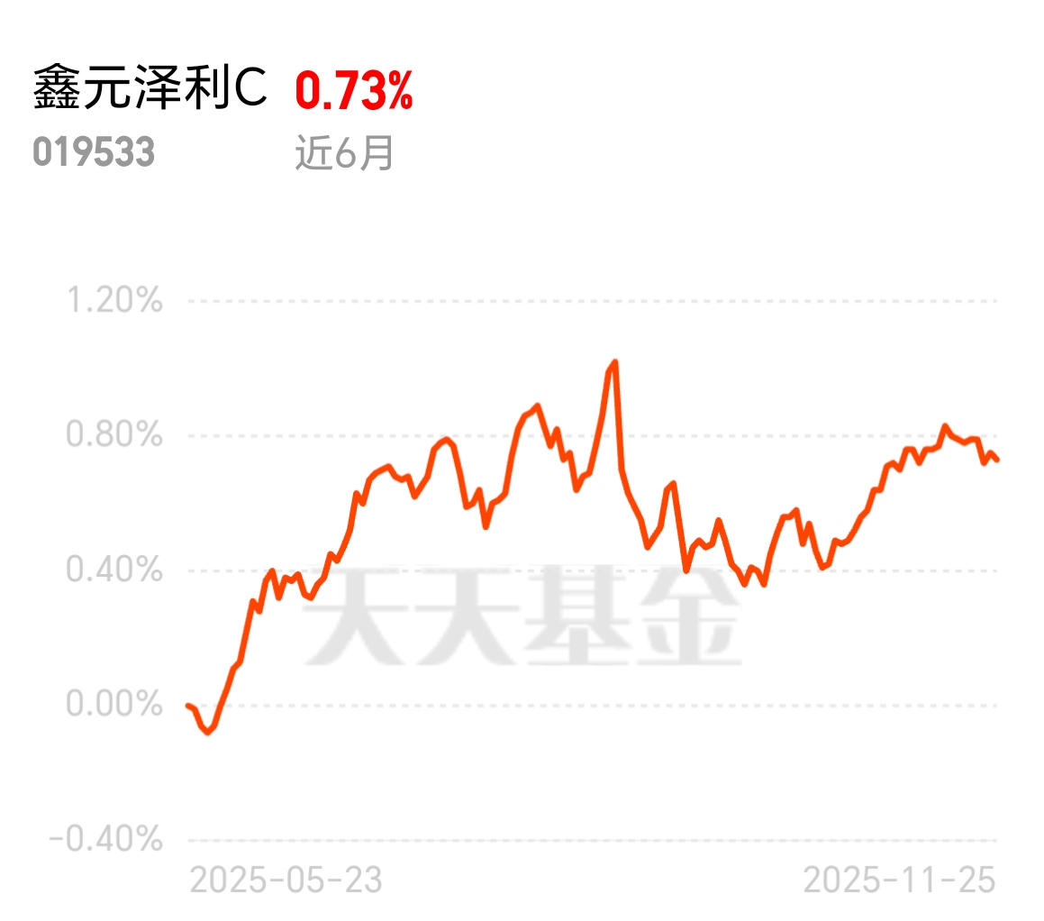 现在不少人都在找波动小的理财,债市的稳健属性刚好契合需求。鑫元泽利债券C表现亮眼,近6个月收益有0.73%,不用承担高风险,还能实现财富稳步增值,妥妥的安心之选。