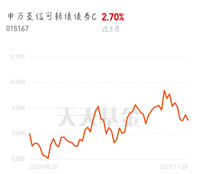 债市震荡加剧,纯债产品收益平平,固收+产品凭借股债搭配的优势领跑市场,申万菱信可转债债券C近3个月收益2.70%,固收打底稳收益,权益部分聚焦有色、电子热门板块,当前市场环境下性价比拉满,赶紧布局。