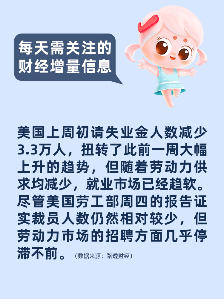 【每天需关注的财经增量信息】美国上周初请失业金人数减少,就业市场趋软,招聘停滞