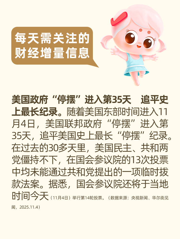【每天需关注的财经增量信息】美国政府“停摆”进入第35天,追平史上最长纪录。