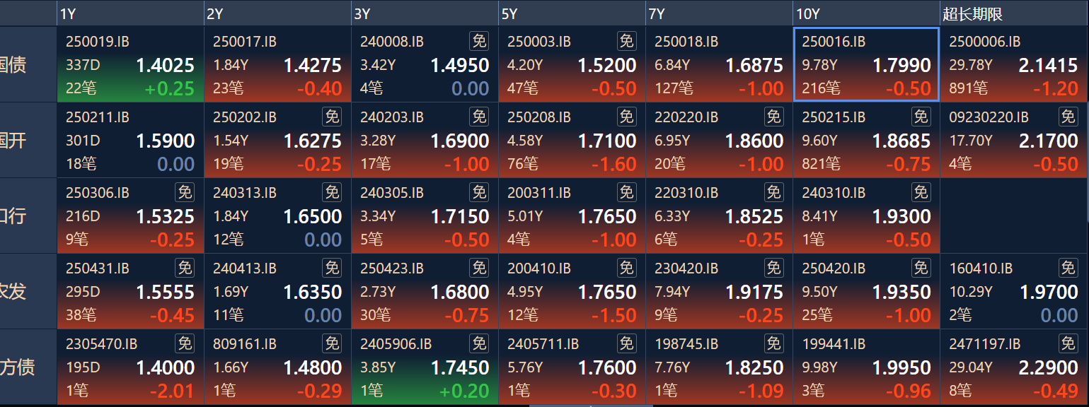 二、十年期国债收益率:1.799 -0.005%(国债收益率越涨,债市越跌,两者反向关系)
