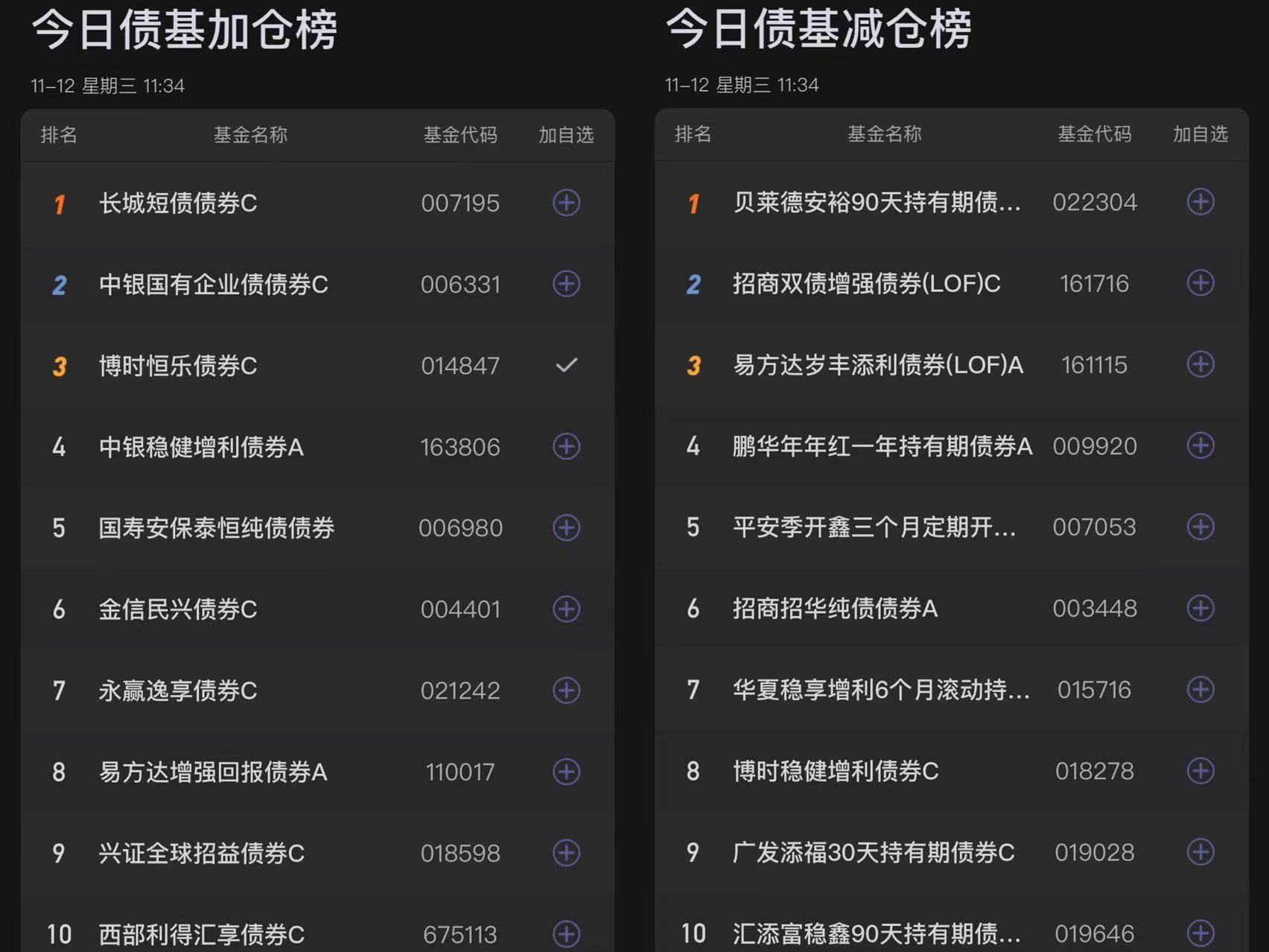 五、今日债基榜单: