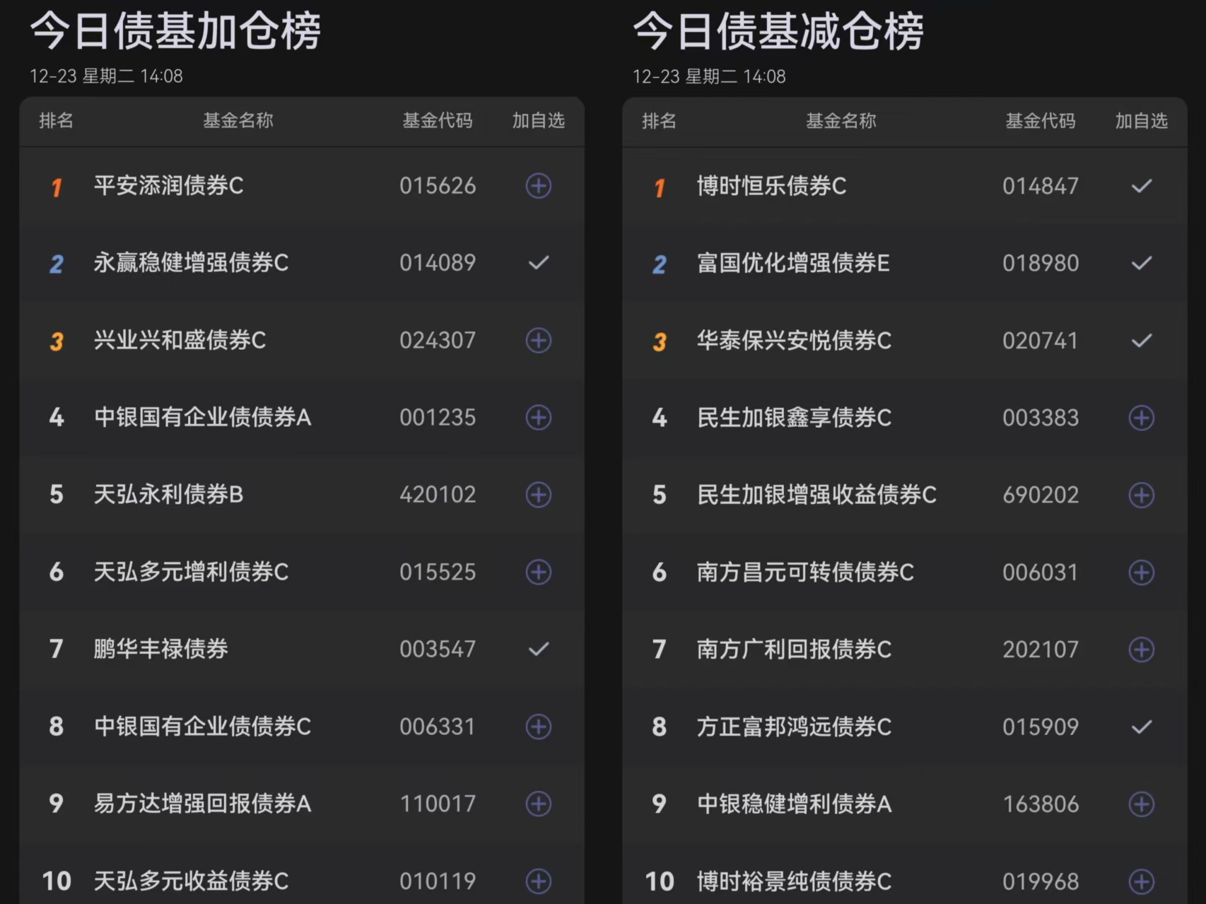$博时恒乐债券A(OTCFUND|014846)$$汇添富添添乐双盈债券A(OTCFUND|017592)$$易方达增强回报债券A(OTCFUND|110017)$$广发集轩债券A(OTCFUND|017475)$$华泰保兴安悦债券C(OTCFUND|020741)$$鹏华丰禄债券(OTCFUND|003547)$$南方中债7-10年国开行债券指数C(OTCFUND|006962)$$永赢稳健增强债券C(OTCFUND|014089)$