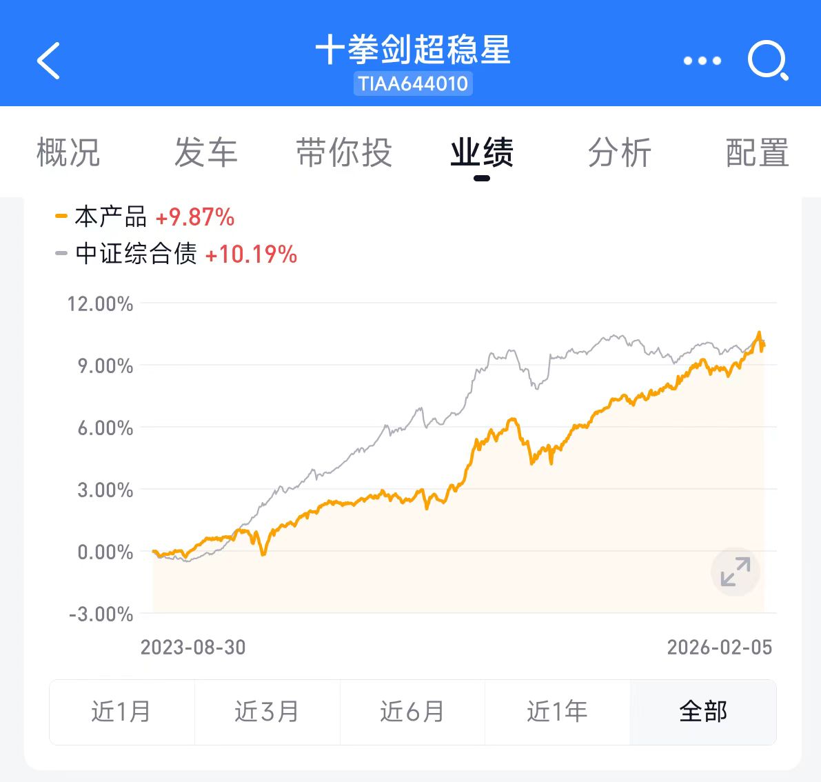$十拳剑超稳星$组合的基准是最强的100%中债综合财富指数。